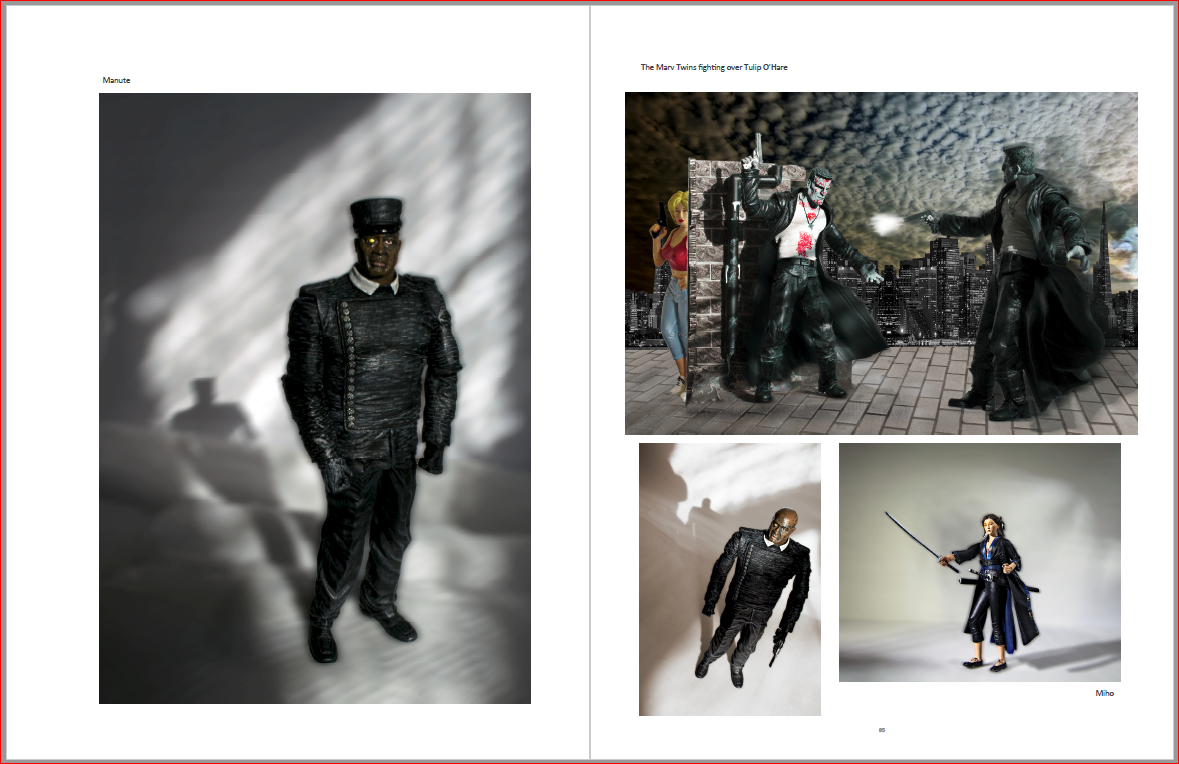 As explained in the Unreality Studios Manifesto, the figures are “actors” in new situations for which I am their “Cecil B. DeMille.”