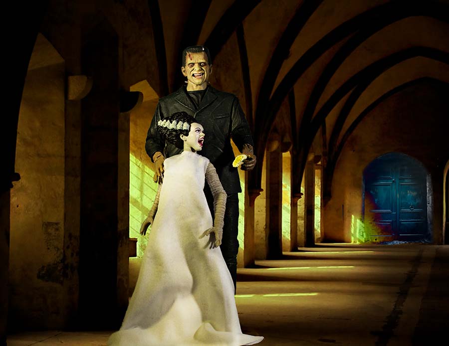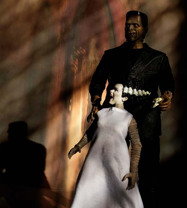 The Bride was originally brought to life by actress Elsa Lanchester in the classic film by James Whale: Bride of Frankenstein from 1935. She lives now in stories and movies and action figures...